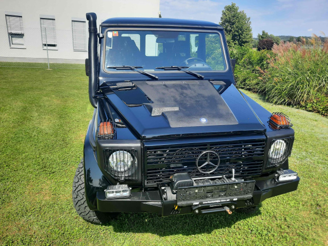 Auch in puncto Zusatzausstattung überzeugt das Fahrzeug auf ganzer Linie. Neben einem Schnorchel und der bereits erwähnten begehbaren Motorhaube verfügt der G300 Professional über eine Hornseilwinde mit robuster Stoßstange, Asteroth Schwerlast-Felgen (7J) mit All-Terrain-Bereifung, eine Anhängekupplung sowie eine moderne Multimedia-Ausstattung mit integriertem Radio, Lautsprechern und USB-Anschluss.