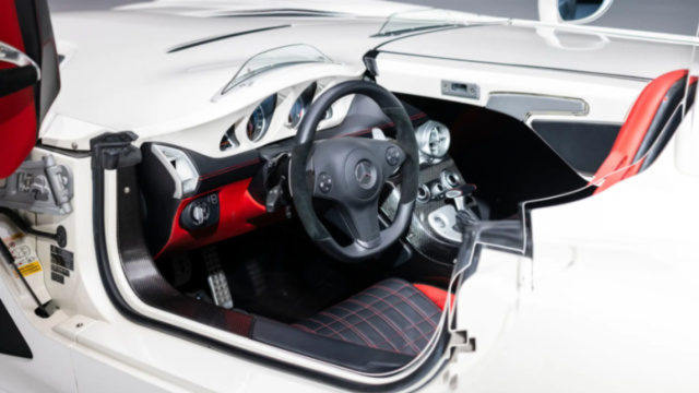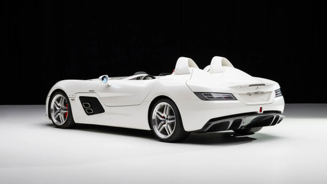 Ohne Windschutzscheibe und Dach, dafür mit ultraleichter Carbon-Karosserie, speckte der Stirling Moss rund 200 Kilogramm gegenüber dem normalen SLR ab. Das Ergebnis: 0 auf 100 km/h in 3,5 Sekunden – und eine atemberaubende Spitzengeschwindigkeit von 354 km/h.