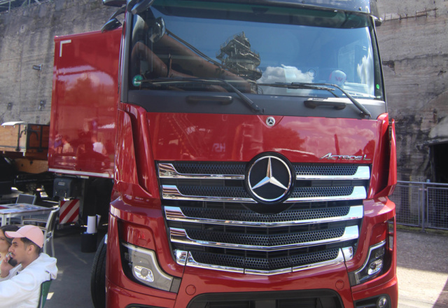 Der Actros L steht auch bei sehr anspruchsvoller Topografie und großen Lasten für hohe Effizienz und Zuverlässigkeit. Angetrieben wird das Ausstellungsfahrzeug durch einen Mercedes Benz Sechs-Zylinder OM 473 mit einer Leistung von 460 kW (625 PS) mit einem maximalen Drehmoment von 3.000 Nm bei 1100 U/min. Der OM 473 mit 16,1 Liter Hubraum krönt als leistungstärkstes Triebwerk die Motorengeneration von Mercedes-Benz Lkw. Gekoppelt ist der OM 473 mit dem vollautomatisierten Zwölfganggetriebe G330-12.
