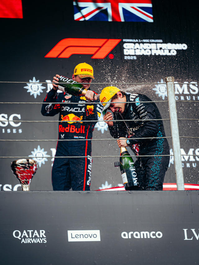 Am Sonntag dann das Hauptrennen – und wieder war Antonelli der Mann des Tages aus Sicht der Mercedes-Fans. Beim Start blieb er ruhig, hielt sich aus dem üblichen Getümmel in São Paulo heraus und verteidigte souverän seine zweite Position hinter Norris. Ein früher Zwischenfall zwischen Charles Leclerc und Oscar Piastri sorgte für ein virtuelles Safety Car, das die Strategien durcheinanderwirbelte. Mercedes blieb cool, reagierte besonnen und brachte beide Autos taktisch geschickt über die Distanz.