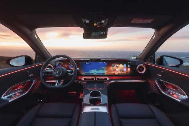 Neben dem aufgewogenen Fahrverhalten ist der Innenraum eine der großen Stärken des elektrischen Mercedes GLC. Die Materialien am Armaturenbrett sind fast durchweg angenehm weich, insbesondere im oberen und mittleren Bereich. Der Plastiklook zwischen den Vordersitzen hinterlässt jedoch weder optisch noch haptisch einen guten Eindruck. Das digitale Kombiinstrument mit gigantischer 39-Zoll-Diagonale bietet verschiedenste Darstellungen. Dabei sind auf dem zentralen Bildschirm wichtige Informationen, wie beispielsweise der Kraftstoffverbrauch, nicht immer leicht zu finden.