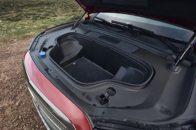 Angenehm: die Doppelverglasung in den Vordertüren trägt zu spürbarer Geräuschreduzierung im Innenraum bei. Platzmangel herrscht im GLC EQ schon durch den 2,97 Meter langen Radstand nicht, denn vier oder gar fünf Personen finden bequem Platz, auch wenn die Füße der Fondpassagiere etwas höher stehen als ideal. Das Panorama-Schiebedach durchflutet den Innenraum mit Licht und bietet einem 1,80 Meter großen Fondpassagier mehr als eine Hand Kopffreiheit. Überraschenderweise gibt es keine Jalousie und die Passagiere in der zweiten Reihe können selbst in einem SUV dieser Klasse weder die Temperatur noch die Intensität des Luftstroms aus den Lüftungsdüsen zwischen den Vordersitzen regulieren. Zudem fehlen weiche Polsterungen in den hinteren Türablagen. Die Rücksitze lassen sich asymmetrisch umklappen und ermöglichen so eine breite, ebene Ladefläche, wenn die Kofferraumbodenwanne in der höchsten Position ist. Der Laderaum ist gigantisch: die normalen 570 Liter an Volumen lassen sich durch Umlegen der Rücksitze auf bis zu 1.740 Liter erweitern. Und dann ist da noch der 128 Liter große Frunk – das ist amtlich. Zudem kann der Elektro-Crossover bis zu 2,4 Tonnen schwere Anhänger schleppen.